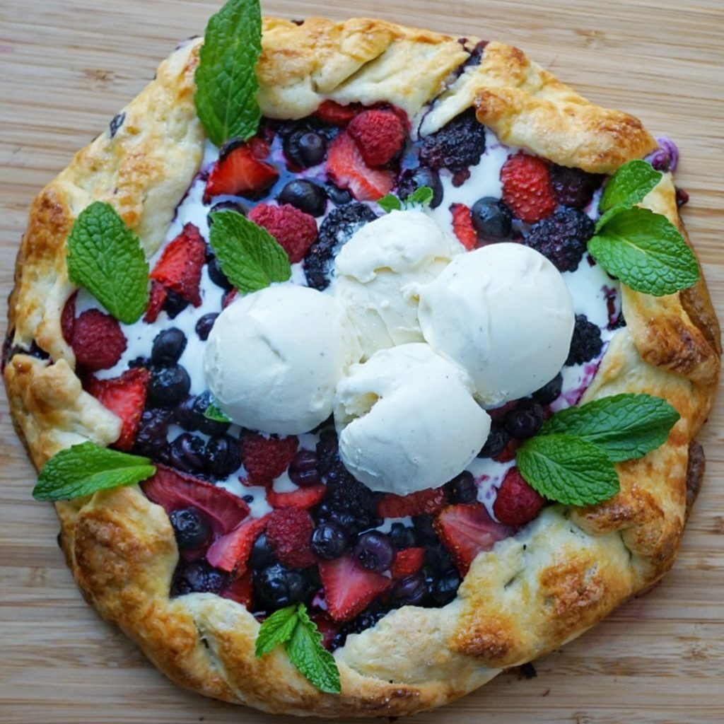 After baking, let the galette rest for about 15 minutes and then scoop all the ice cream that you desire on top and serve!! I love how crispy the crust came out!