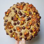 The below recipe makes 5 to 10 cookies depending on if you’re making filled cookies or only chocolate chip cookies. The filled cookies require twice the amount of cookie dough. The fun part about these cookies is that they’re giant cookies!!