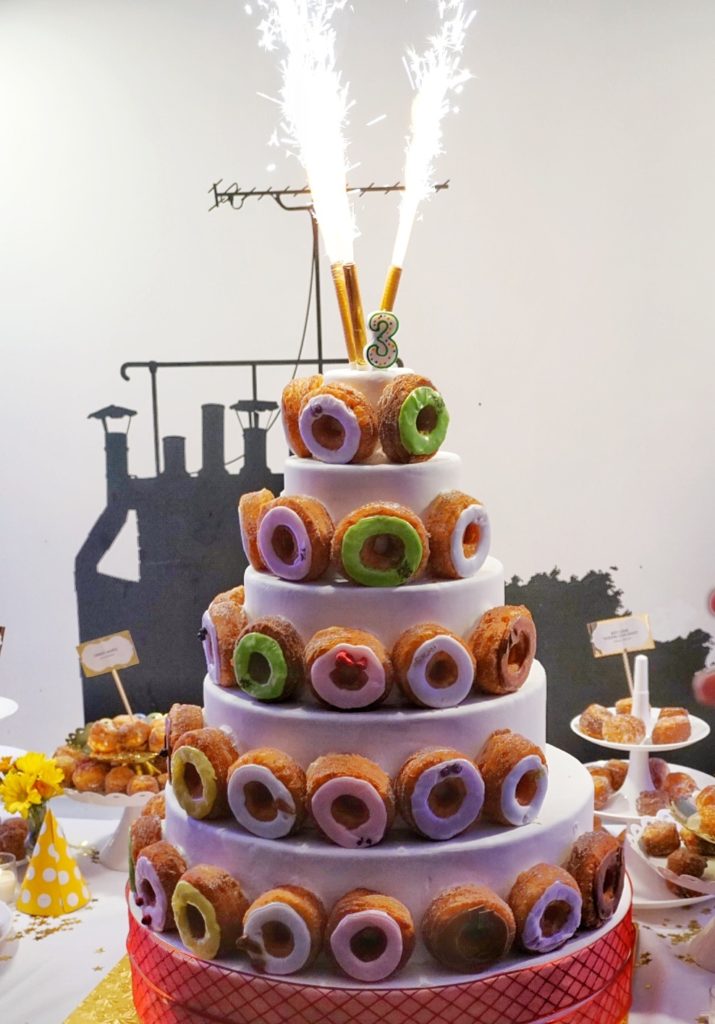 We are ever so thankful to have been invited to the Cronut’s birthday party and it was an awesome party especially for anyone turning 3. Walking into the Spring Street shop, there was a Cronut pattern backdrop for photo ops, followed by the opportunity to get your very own temporary tattoo with “#CronutTurns3” on it.